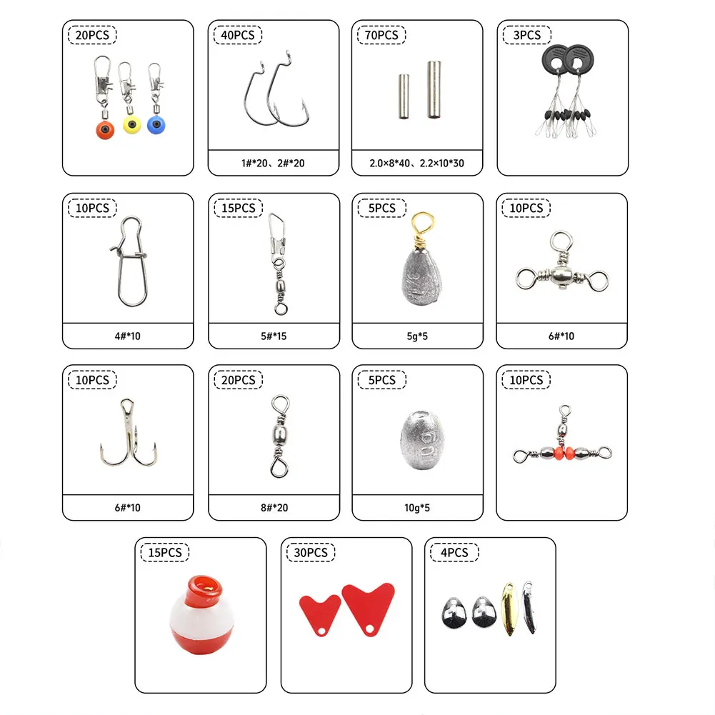 267pcs Fishing Tools Accessories Kit Set with Fishing Box. variety of lures, weights and connectors